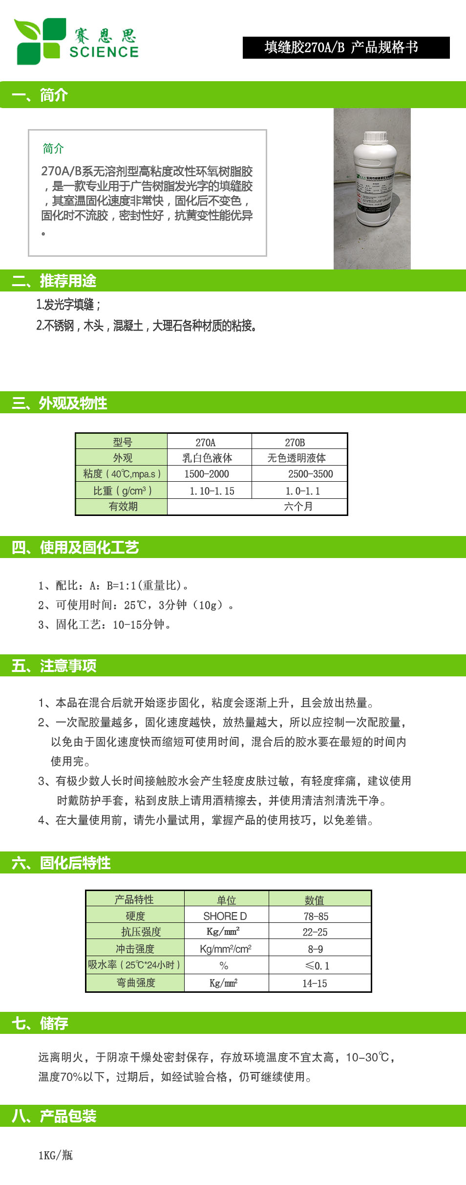 树脂字填缝胶270AB 抗黄变填缝胶 无溶剂型高粘度改性环氧树脂胶270AB
